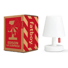 Die kleine LED-Tischlampe Edison La Surprise sorgt mit ihrem warmweißen LED-Licht sowohl im Wohnbereich als auch draußen für eine angenehme Atmosphäre.